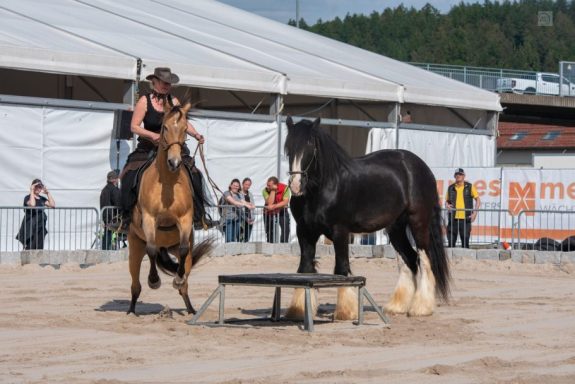 Welche besondere Herausforderung war es für sie, ihrem Team und auch für die Pferde, ihr Programm in der Show Arena auf der Messe Wächtersbach durchzuführen?